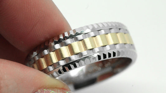 9mm Gold Massive Faceted Edge Wedding Band for Men | AT-0017