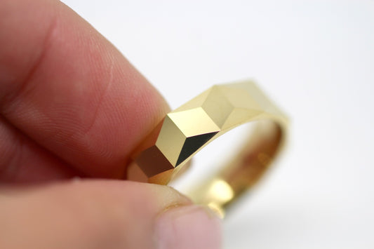 3mm Solid Gold Wedding Band for Women Faceted Diamond Shape | T-0020
