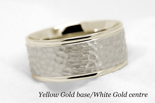 10mm Gold Classic Hammered Flat Wedding Band for Men | T-0015