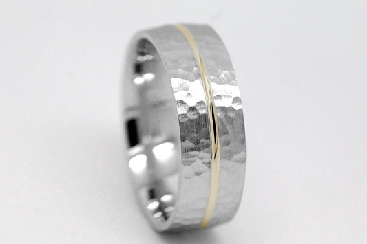 7mm Solid Gold Hammered Wedding Band for Men and Women with Line | AT-0008
