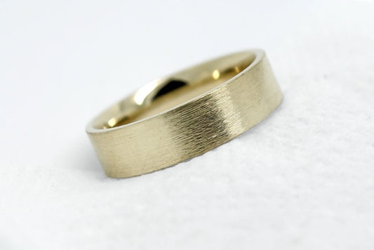 Gold Wedding Ring for Men | 10K 14K 18K Gold | 6mm Brushed Band AT-0007