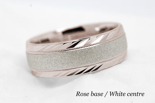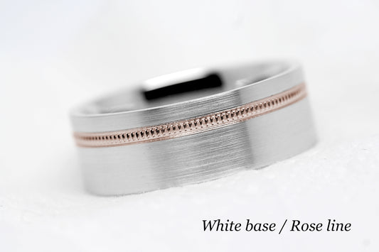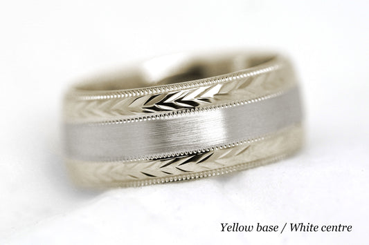 8mm Solid Gold Wedding Band for Men and Women Flat Brushed Filigree Edge | AT-0013
