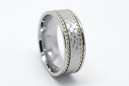 8mm Hammered Gold Wedding Band for Men and Women Twisted Rope | T-0017