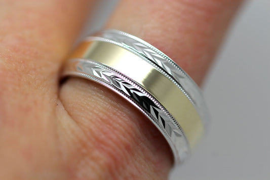 8mm Gold Wedding Band for Men and Women with Filigree Edge | T-6673