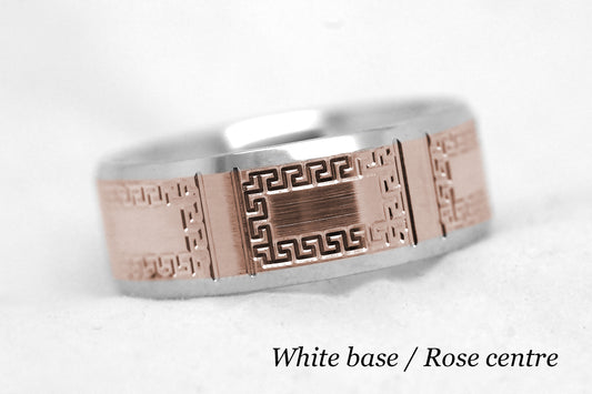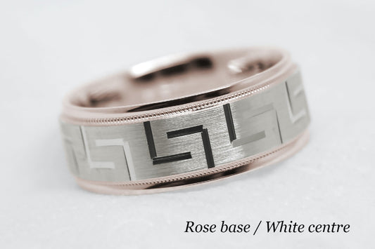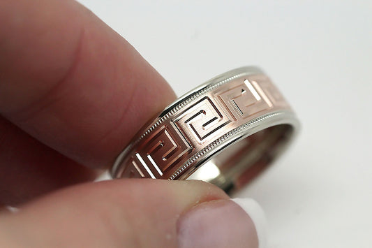 8mm Gold Wedding Band for Men and Women with Greek Design | T-0033