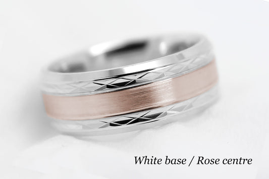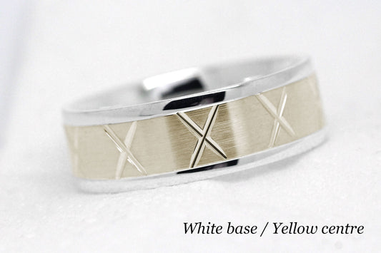 8mm Solid Gold Classic Wedding Band for Men and Women Flat Brushed X pattern | AT-0037