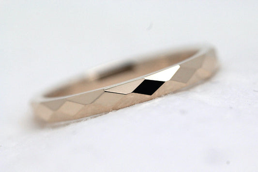 3mm Solid Gold Wedding Band for Women Faceted Diamond Shape | T-0020