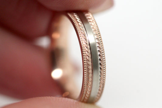 4mm Solid Gold Gold Wedding Band with Wheat design Wedding Band for Women and Men | AT-6262