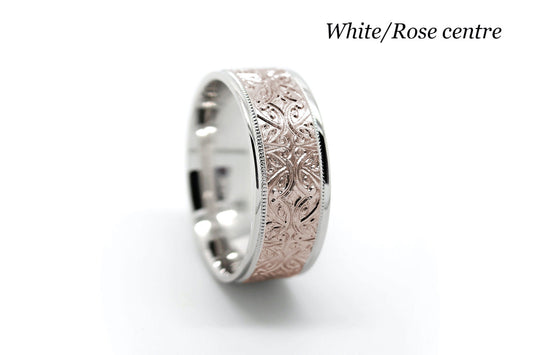 8mm Floral Gold Wedding Band for Men and Women Ornament | AT-8364