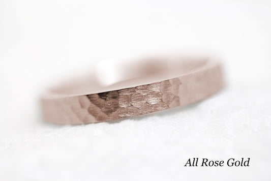 3mm Gold Hammered Wedding Band for Men and Women Flat | AT-0018