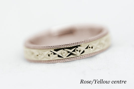 5mm Gold Filigree Rhombuses Design with Milgrain Wedding Band for Men and Women | T-0009