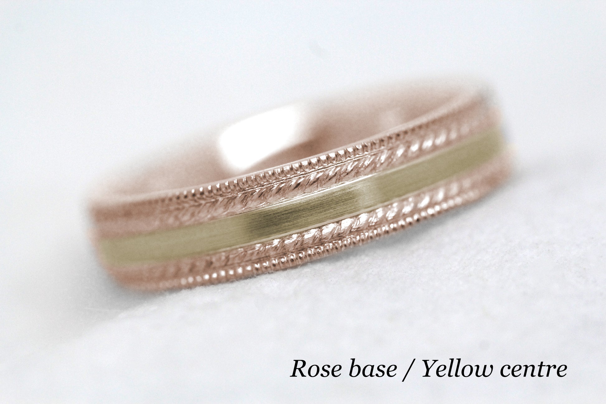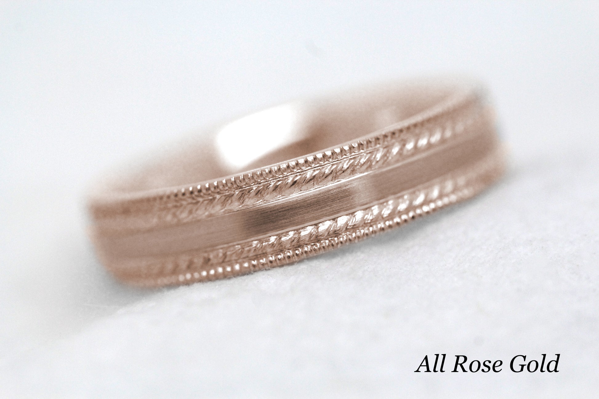 4mm Gold Brushed Wedding Band for Men and Women with Double Milgrain | AT-6537
