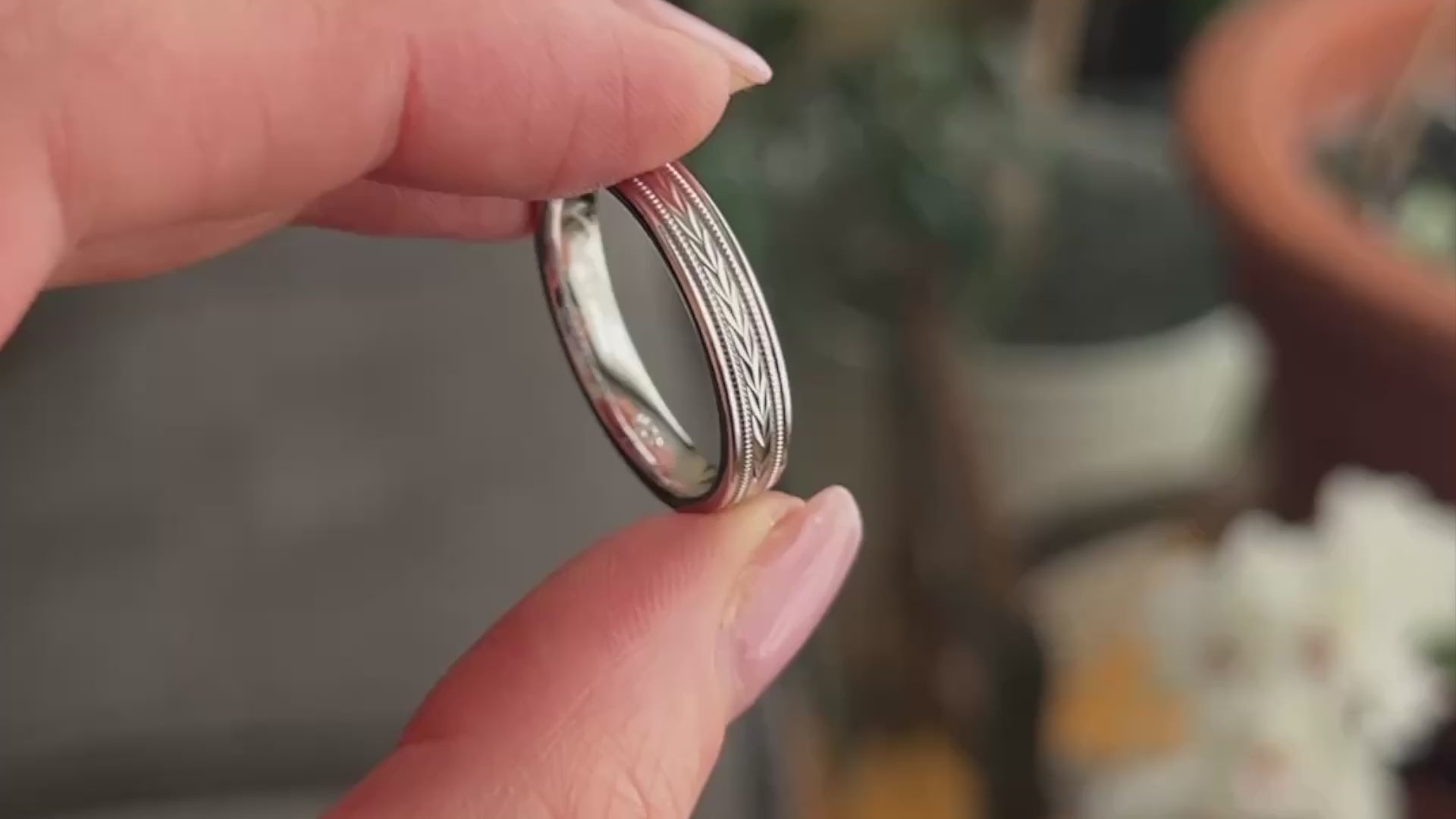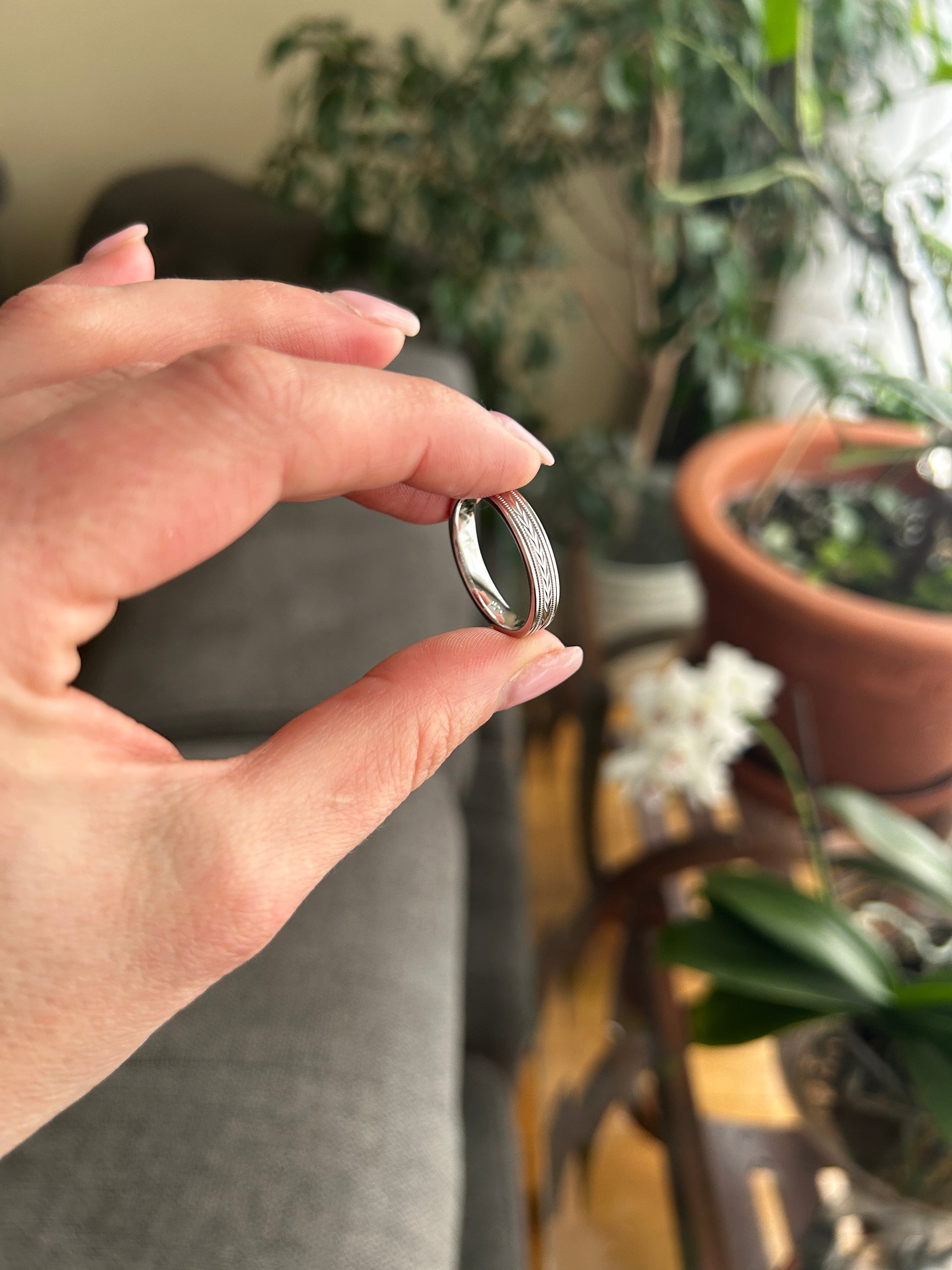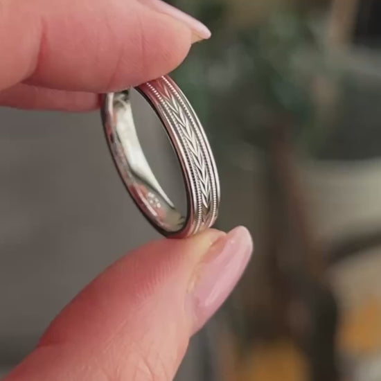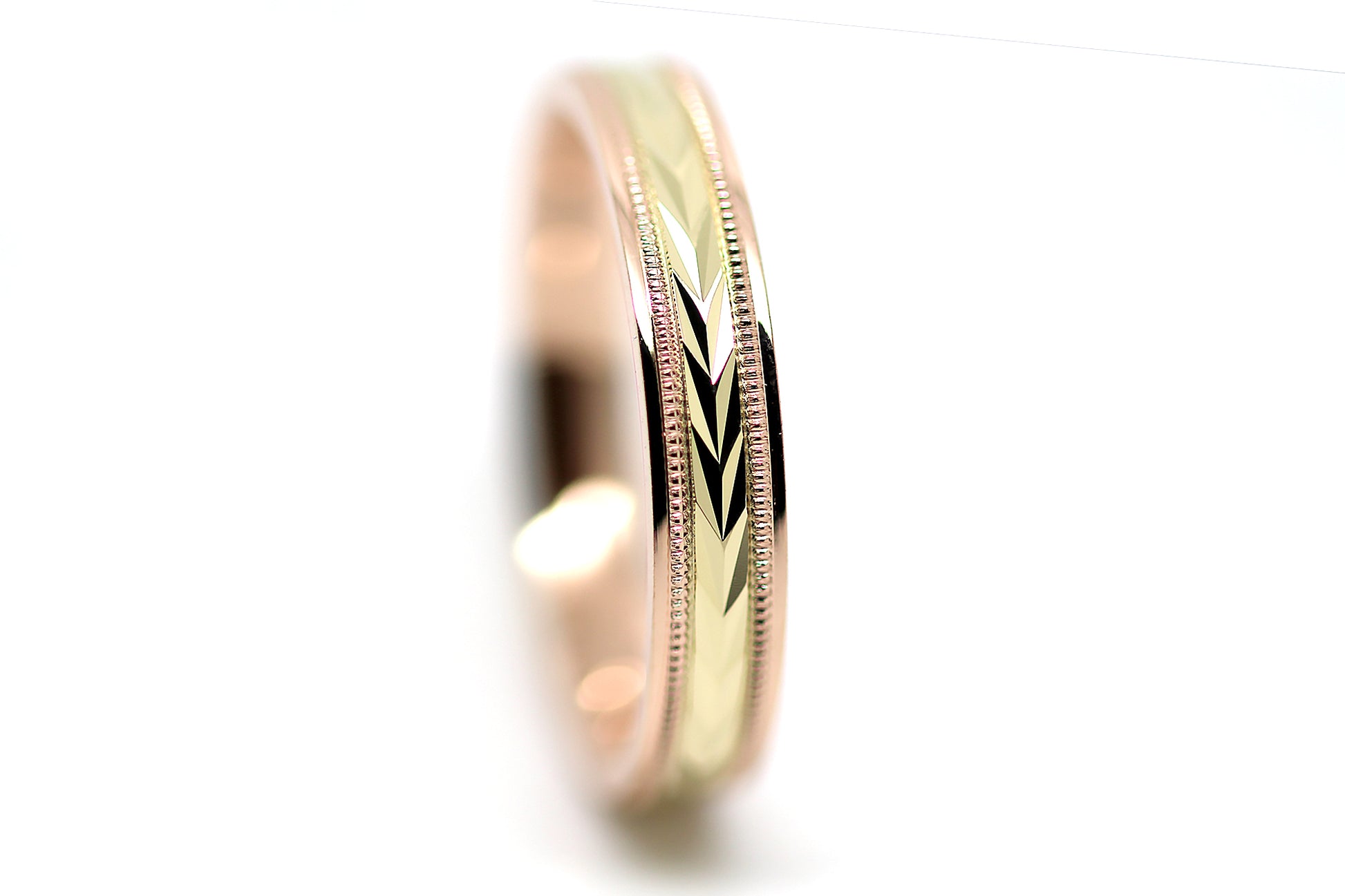 4mm Gold Solid Gold Wedding Band with Wheat design Wedding Band for Women and Men | T-0023