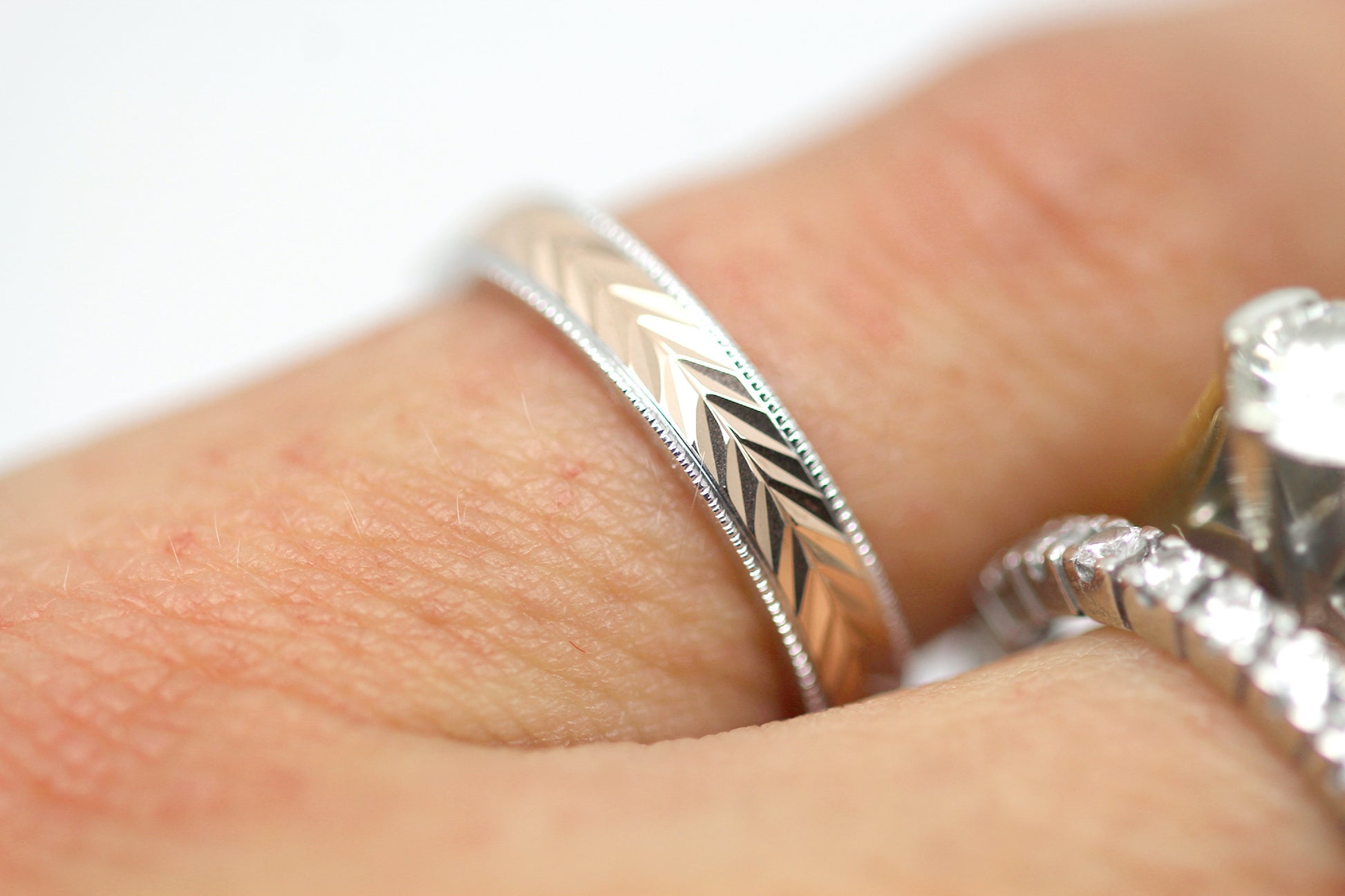 4mm Solid Gold Gold Wedding Band with Wheat design Wedding Band for Women and Men | AT-6262